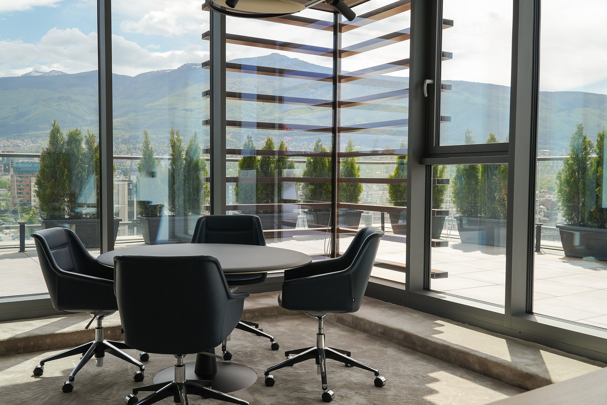 Spanning three levels, the office connects seamlessly to outdoor spaces and panoramic 360-degree views of the mountains and city.